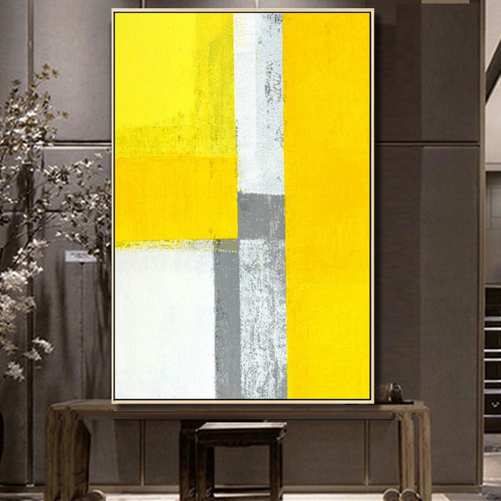Yellow Grey Abstract Painting Canvas Wall Art