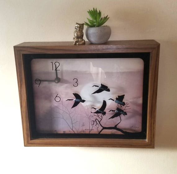 Sale 1977 Elgin Shadowbox Clock Bird Decor 1970s Decor Etsy