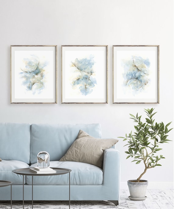 Abstract Blue Art 3 Piece Wall Art Triptych Abstract Etsy