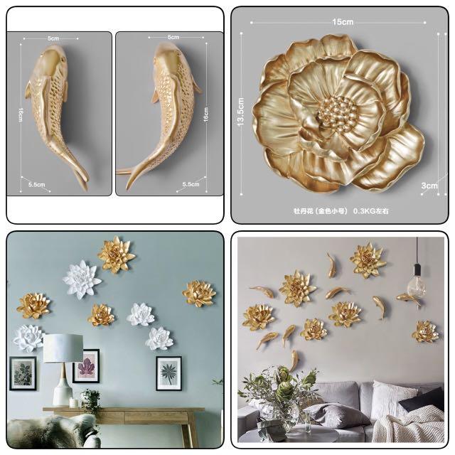 Beautiful 3 Piece Gold Art Sculpture Wall Decor Set Furniture