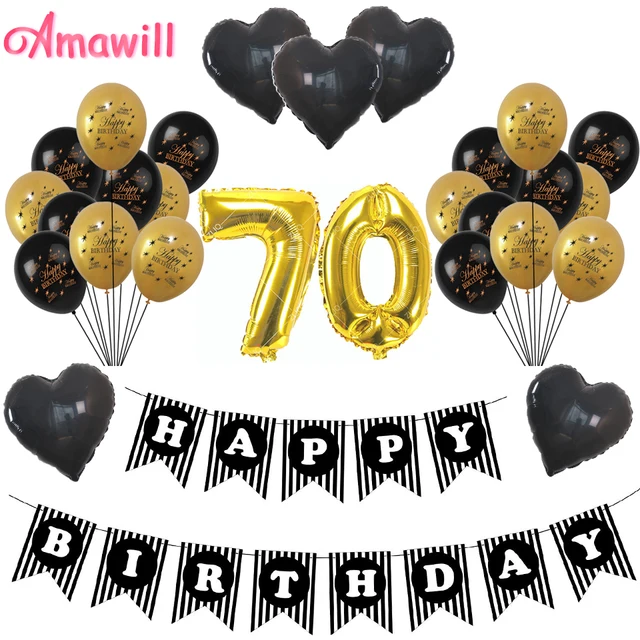 70th Birthday Party Decorations Kit Black Happy Birthday Banner