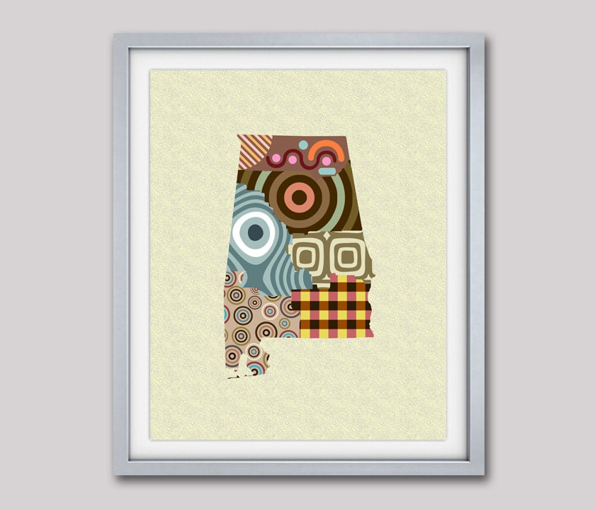 Alabama Wall Art Art Print Alabama Decor Alabama Map Art