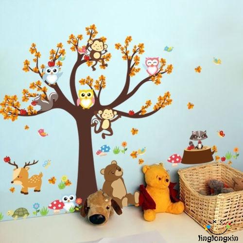 Llg Cute Removable Animal Decor Owl Giraffe Tree Forest Animals