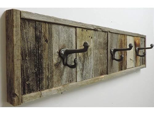 Amazon Com Reclaimed Barn Wood Towel Rack 3 Hook Wall Mounted