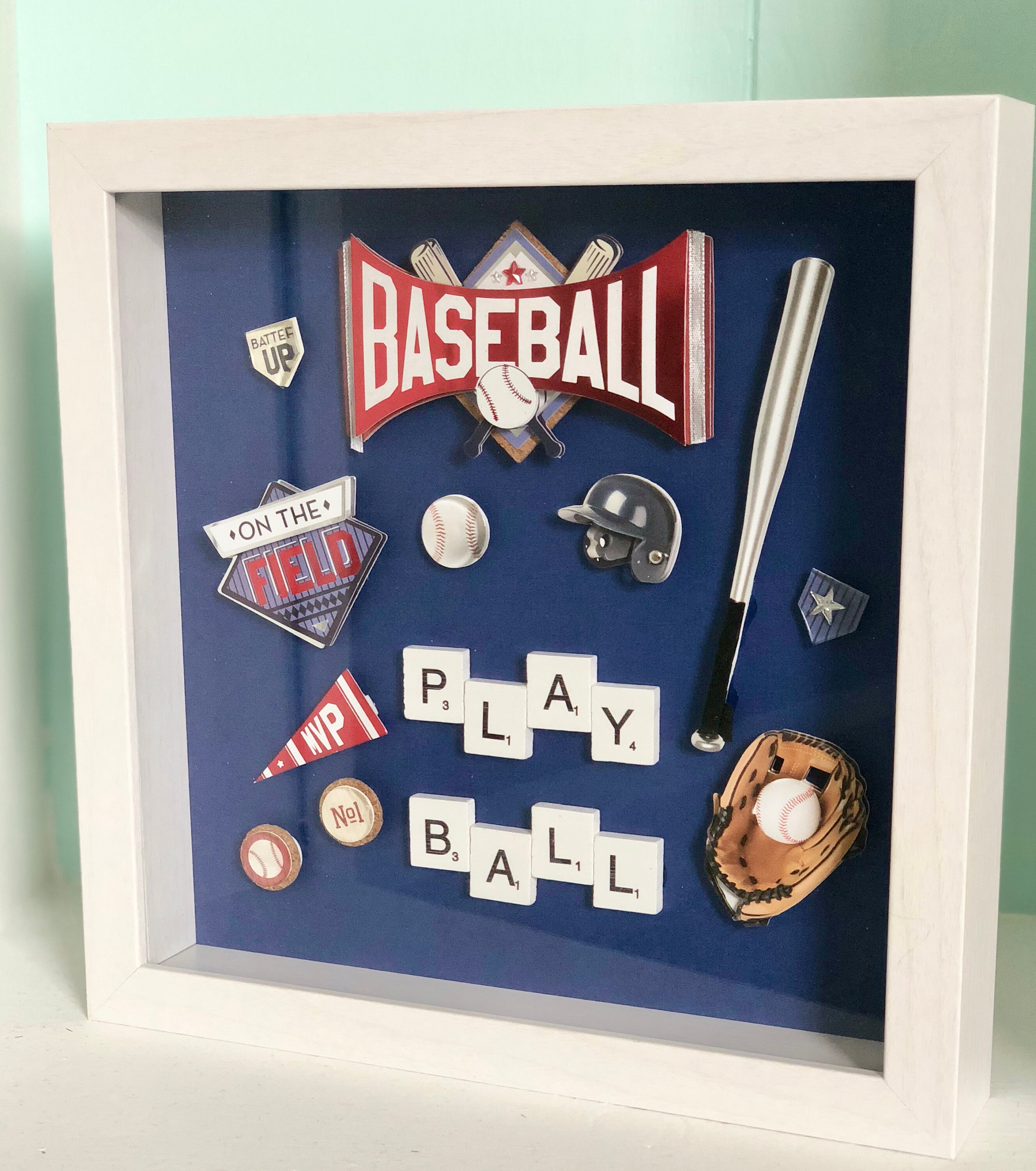 Handmade Baseball Play Ball Shadow Box Picture Baseball Decor