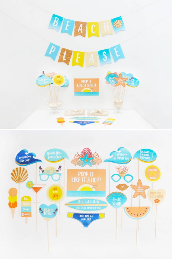 Beach Party Decorations Beach Photo Booth Props Summer Party Etsy