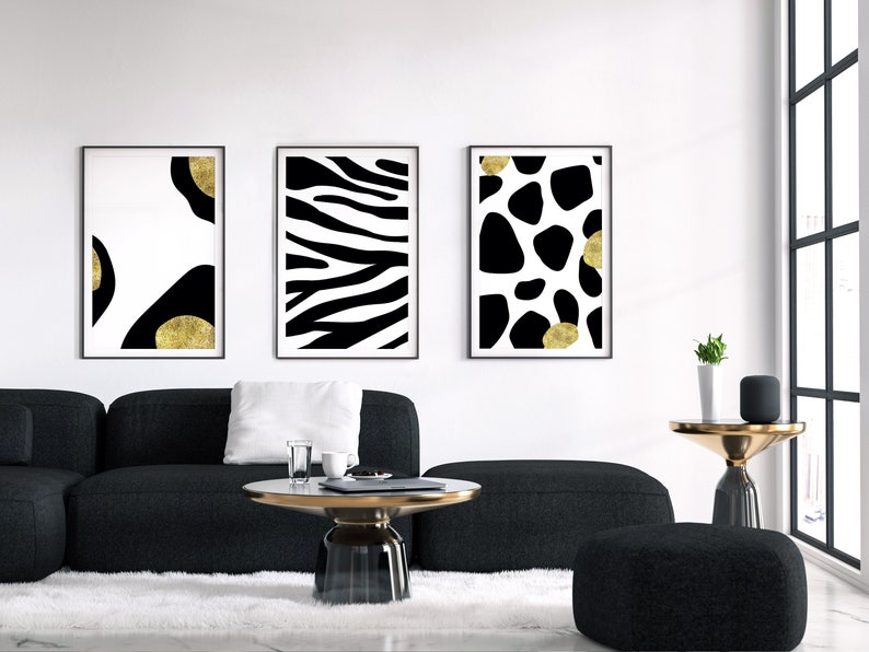 Abstract Printable Art Black And Gold Wall Decor Downloadable Etsy