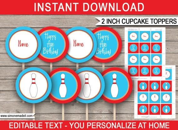Printable Bowling Party Cupcake Toppers Bowling Theme Party