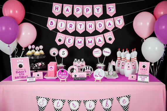 Bowling Party Decorations Girls Bowling Birthday Party Etsy