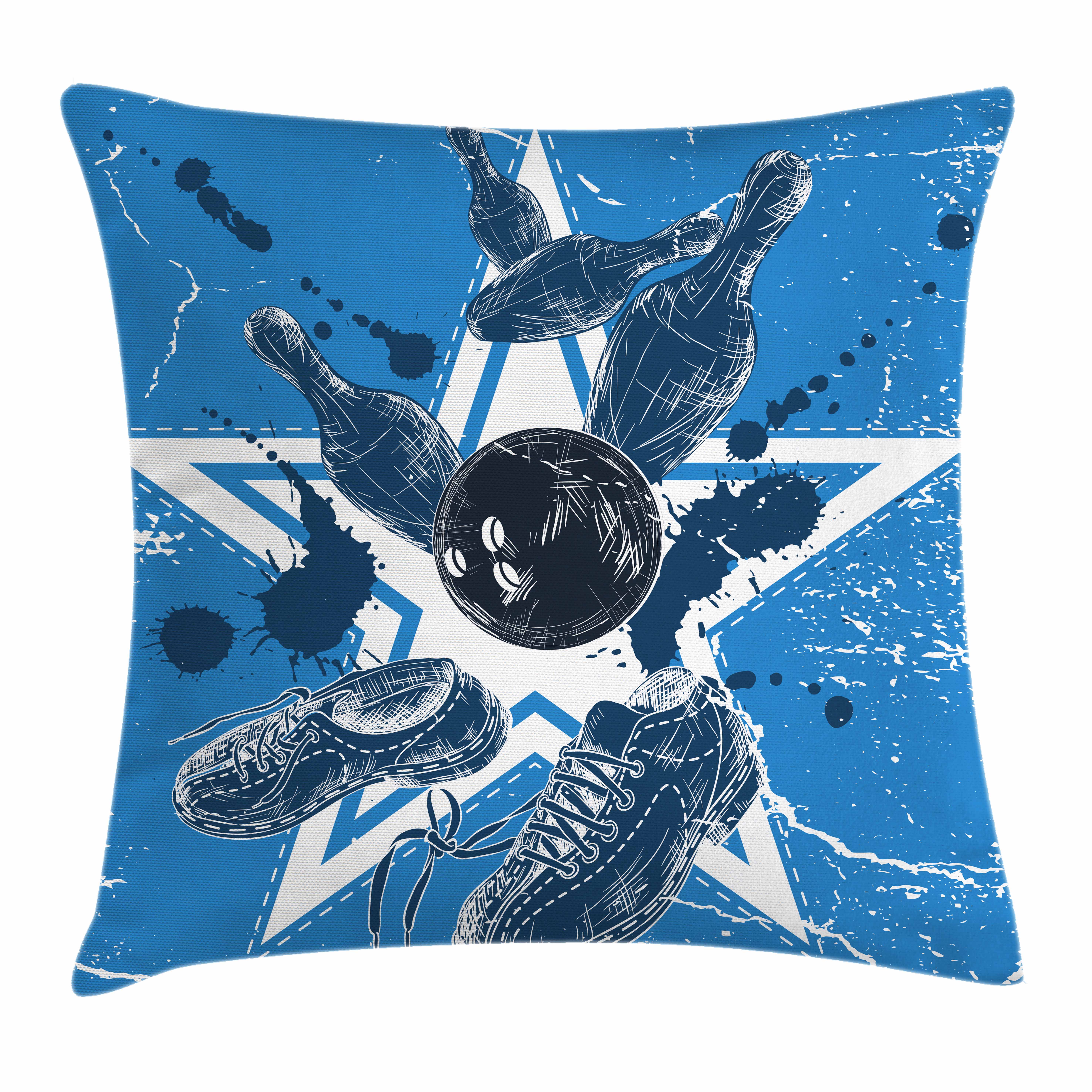 Dark Blue White Red Decorative Square Accent Pillow Case Bowling
