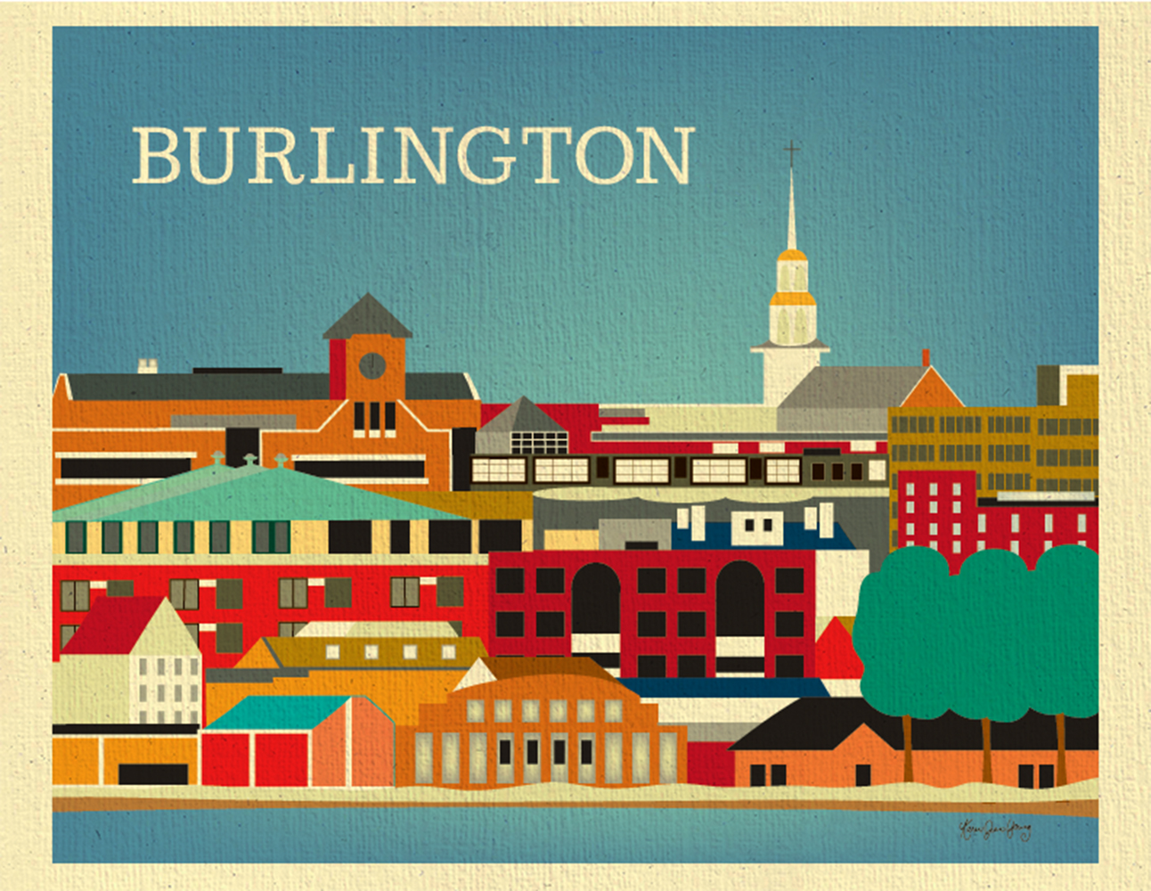 Burlington Vt Skyline Poster Print American City Wall Art For