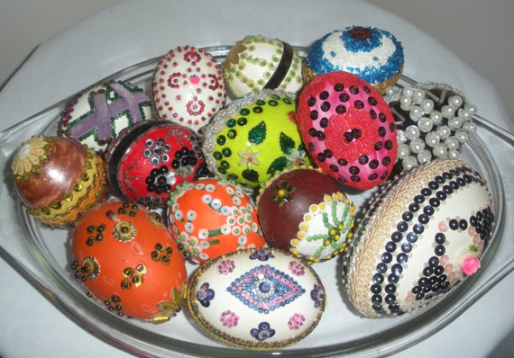 Vintage Decorated Eggs Pin Sequin 14 Total Etsy