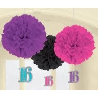 Danglers Fluffy Decor Sweet 16 3pk 40 6cm Victoria Party Store