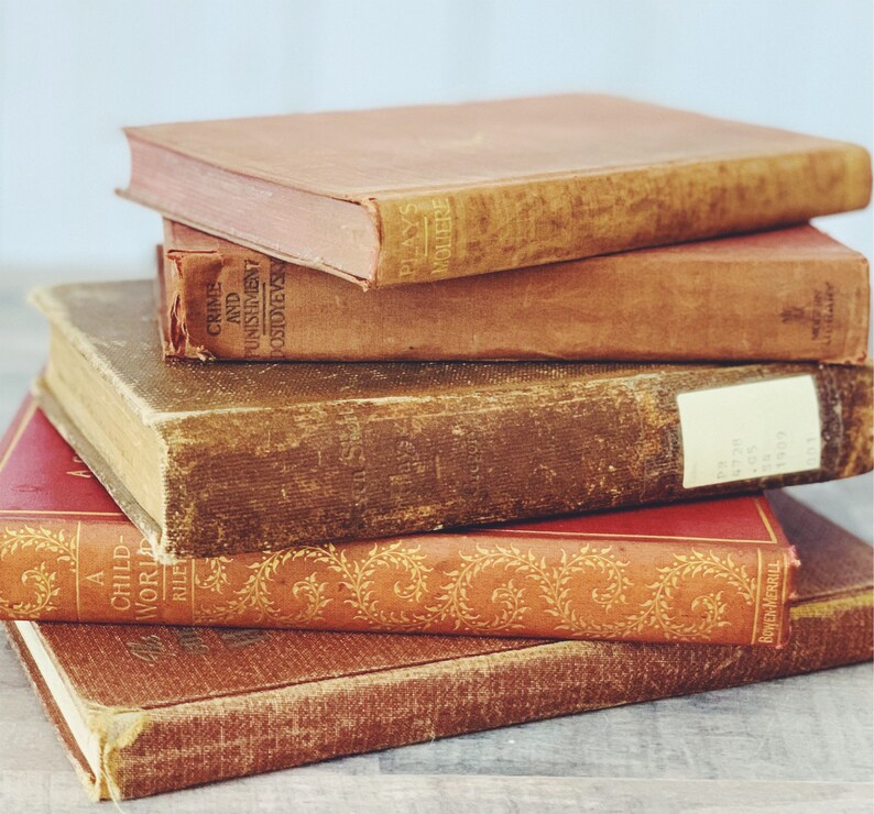 Vintage Books For Display Shabby Book Set Bookshelf Decor Etsy