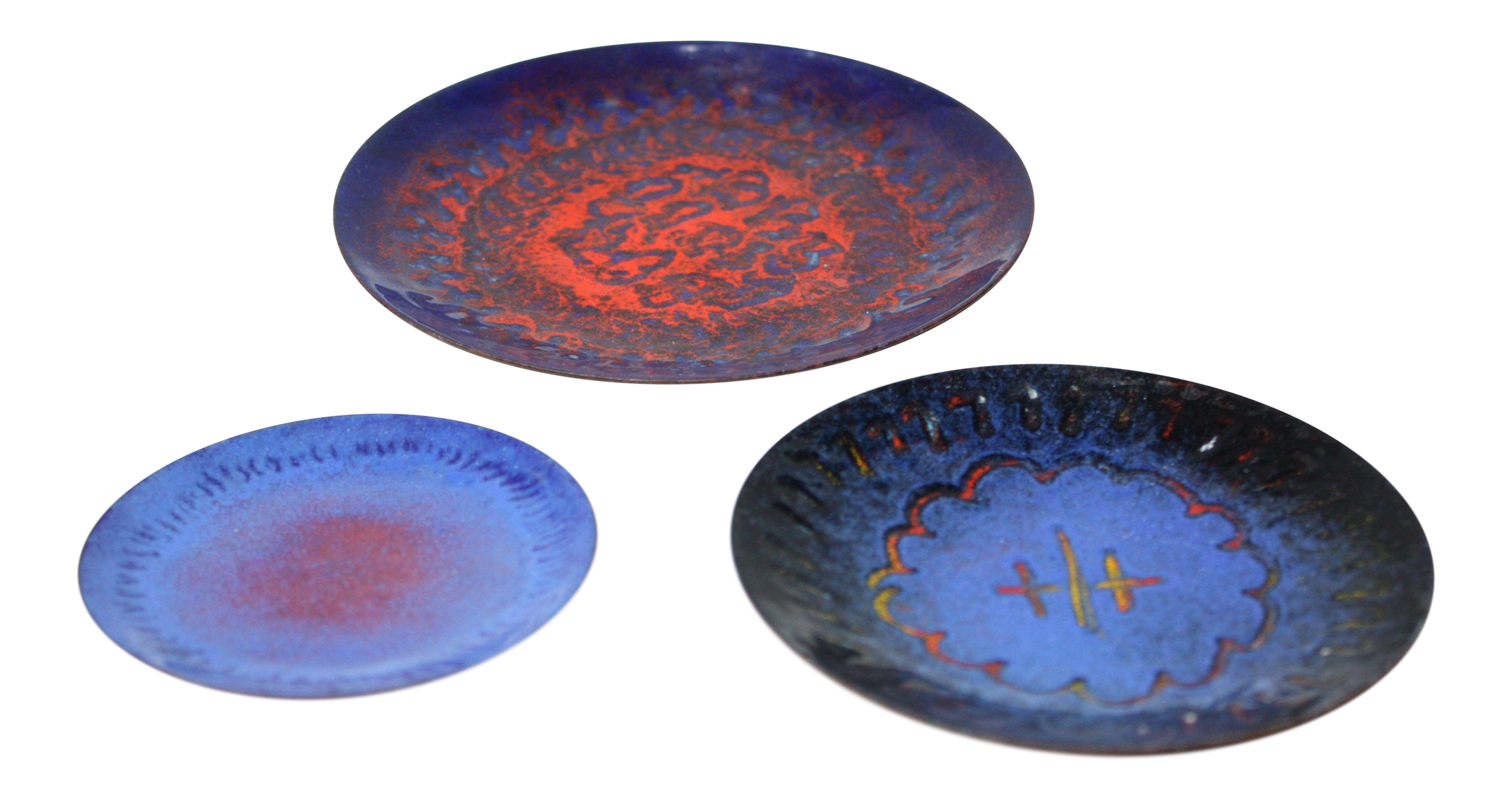 Trio Of Small Modernist Enamel On Copper Decorative Dishes Chairish