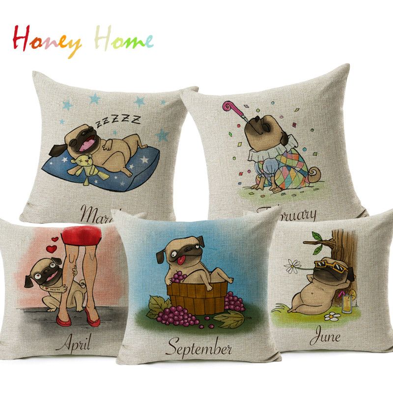 Funny Pug Dog Cushion Cover Naughty Puppy Calendar Home Decorative