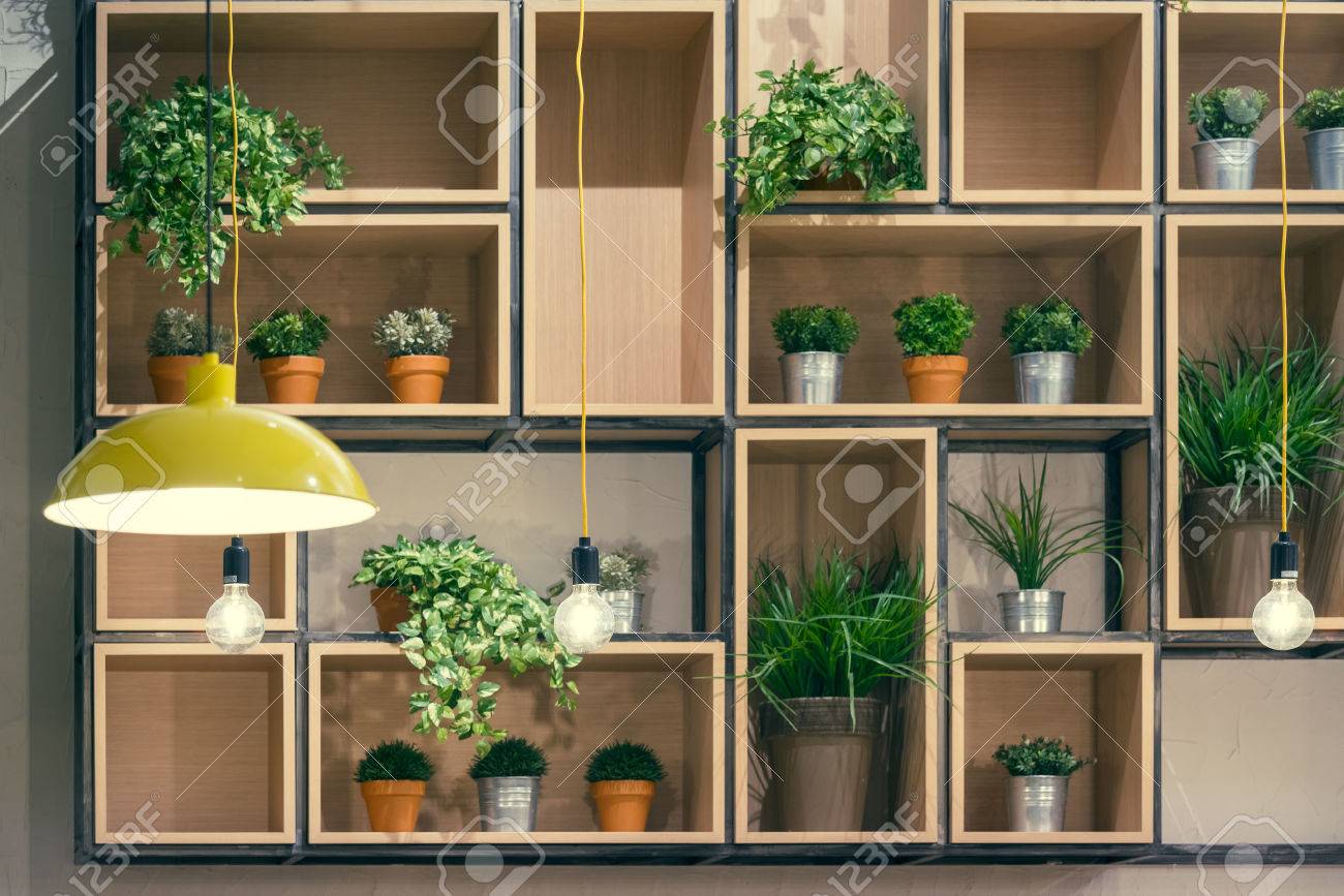 Cafe Interior Decorative Shelves Portfolio Profile Design Photo