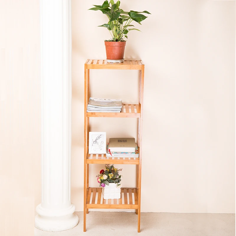 Bamboo Decorative Shelf Wood Bookcase Shelving Floor Bathroom