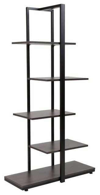 Driftwood Finish 5 Tier Decorative Shelf With Black Metal Frame