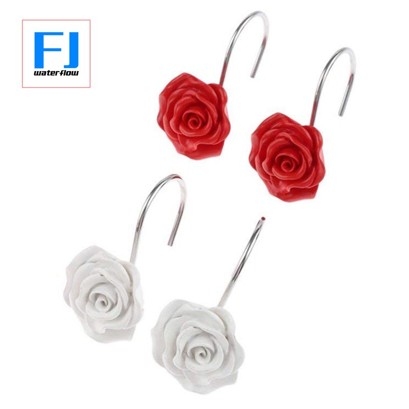 Shower Curtain Hooks 12 Pcs Rose Anti Rust Decorative Shower