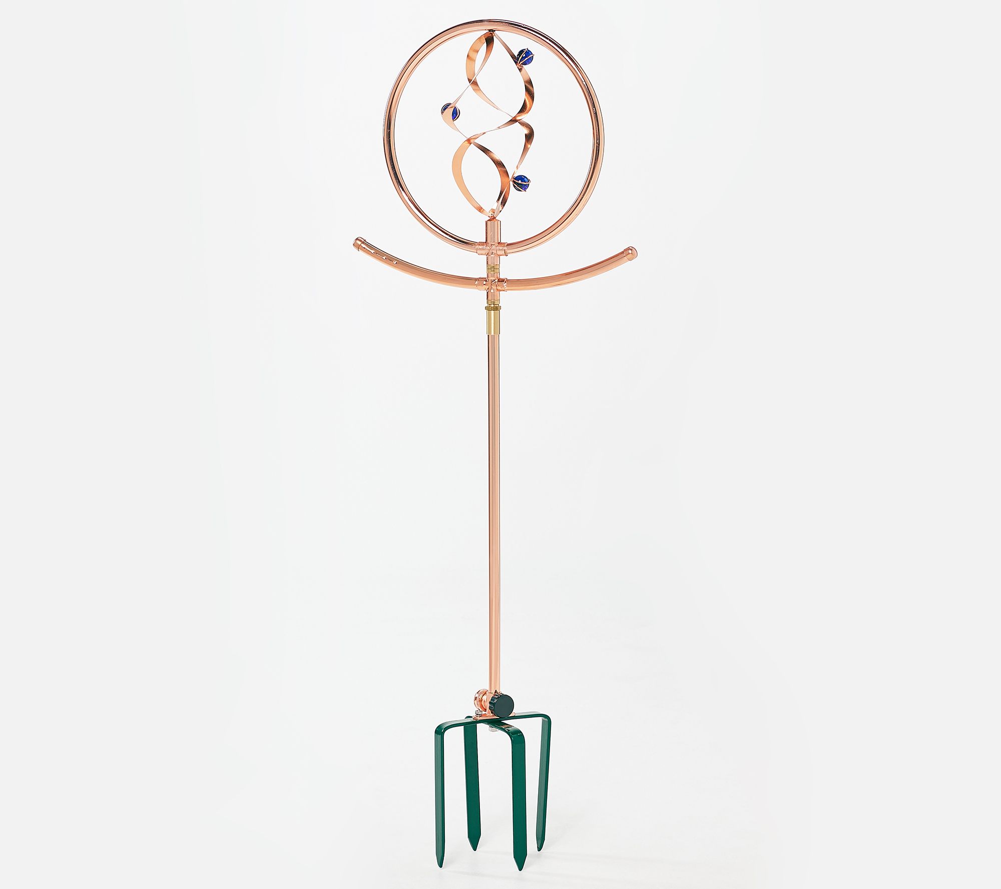 Copper water sprinkler decorative spinning spiral top powder coated stainless steel spike base.