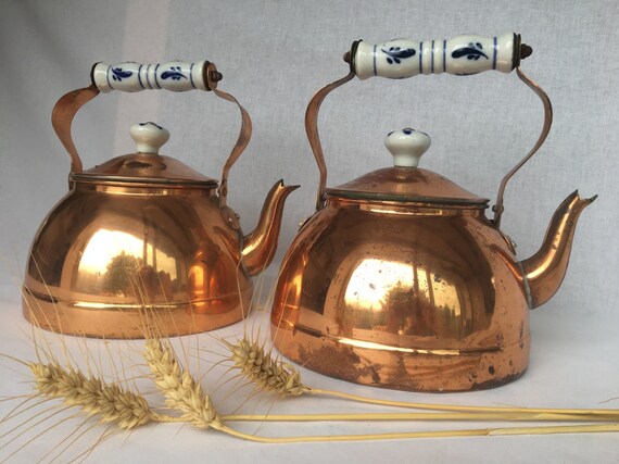 Pair Of Antique Teapots Copper And Earthenware Vintage Etsy