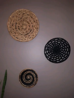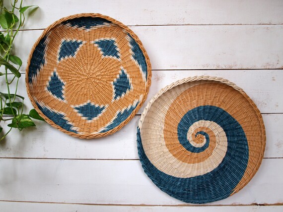 Set Of 2 Wall Hanging Woven Plates African Inspired Decorative Etsy