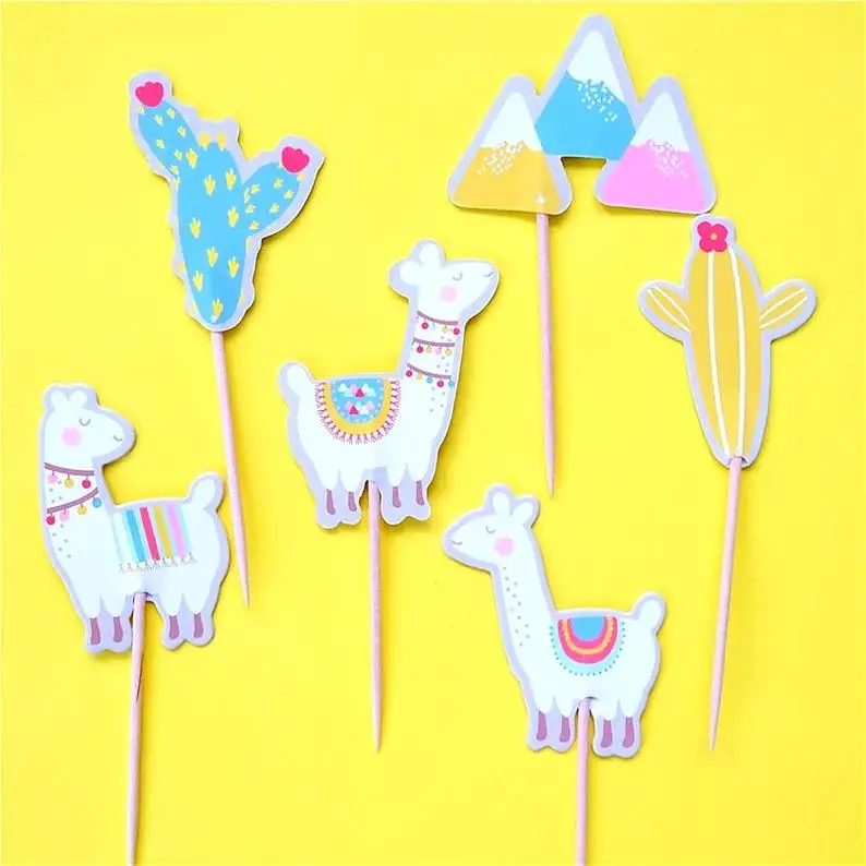 24 Llama Cupcake Toppers Cute Cactus Birthday Party Fruit Picks