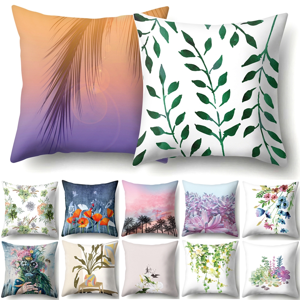Print Floral Home Decor Vintage Cushion Cover Leaves Sofa Soft
