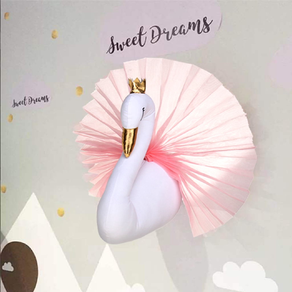 Swan Golden Crown Wall Art Doll Stuffed Toy Animal Decor Kids Room