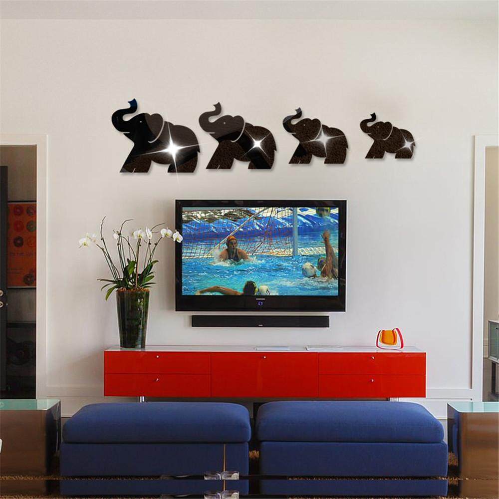 4pcs Elephant Mirror Wall Sticker Decor Art Diy Home Decal Mural