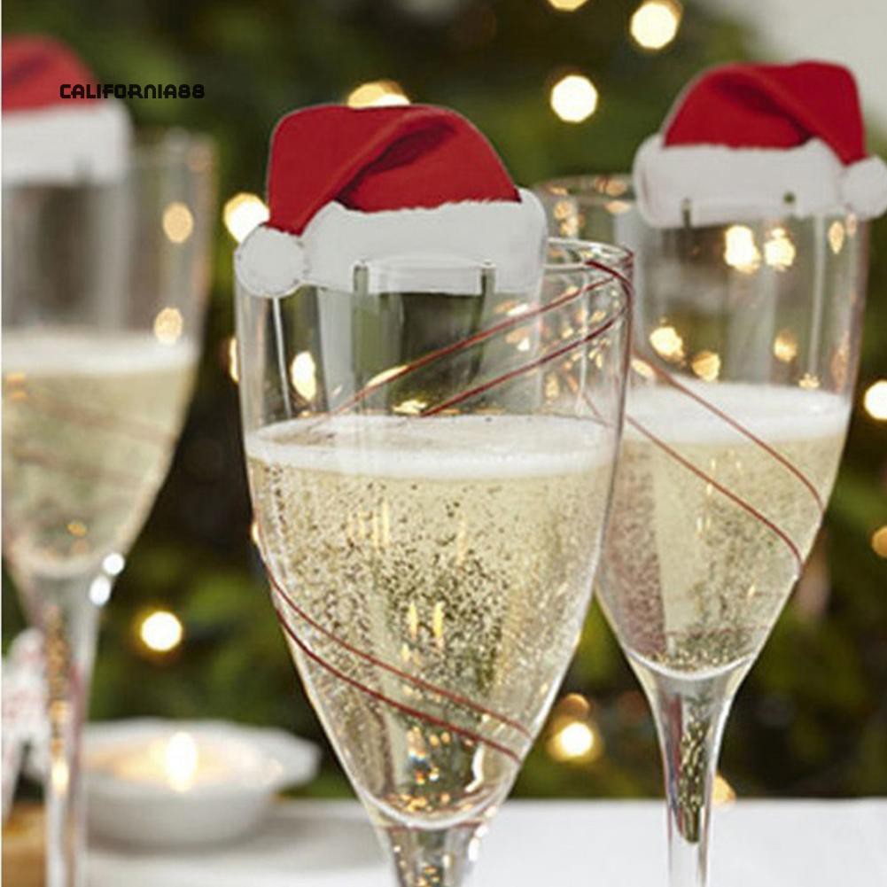 Cali 10pcs Christmas Santa Claus Hat Wine Glass Cards Home