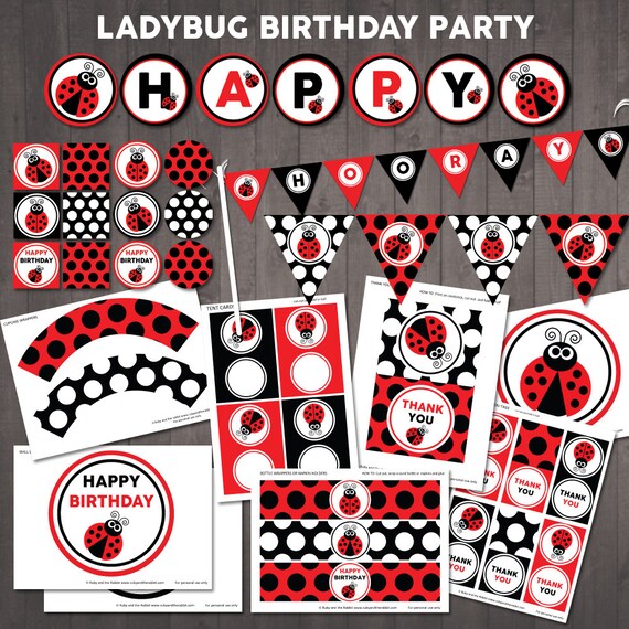 Ladybug Party Supplies Printable Ladybug Birthday Party Etsy