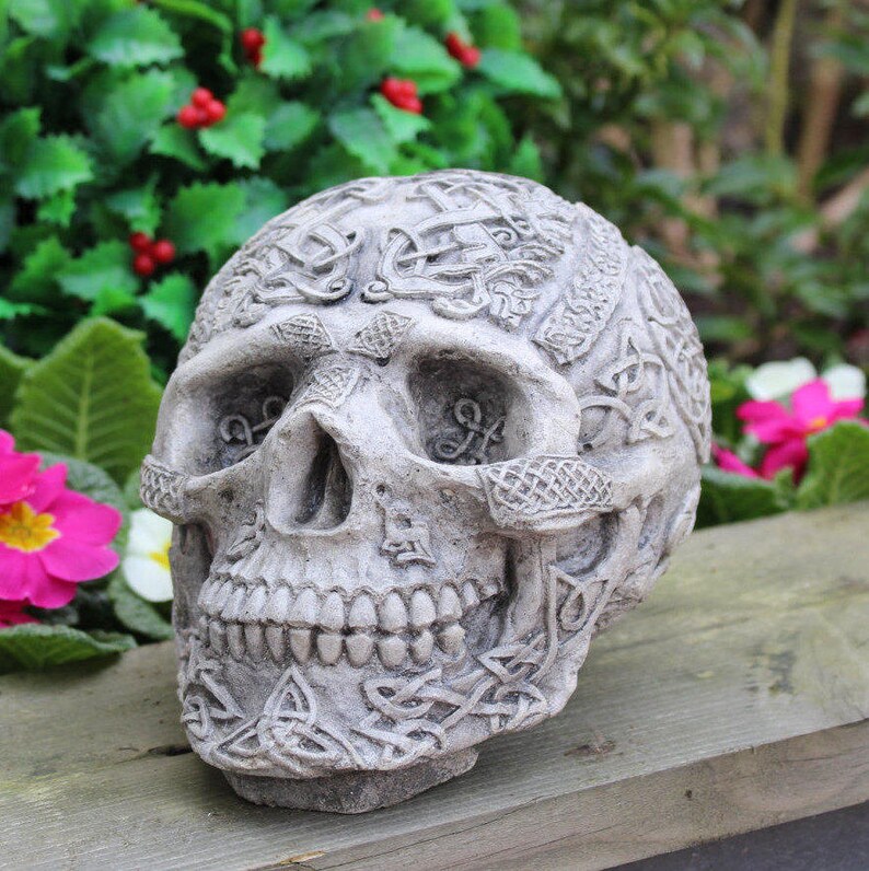Celtic Skull Stone Garden Ornament Lawn Decor Made In Etsy