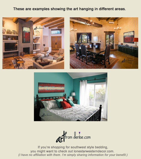 Red Black Aqua Teal Rustic Art Work For Southwest Decor 3 Etsy