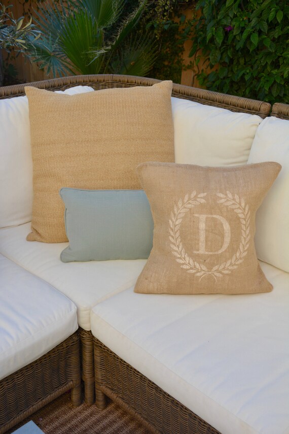 Burlap Jute Personalized Monogram Decorative Pillow Cover Etsy