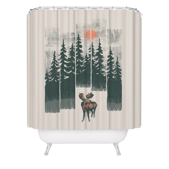Moose Forest Shower Curtain Elk Bathroom Decor Great Etsy