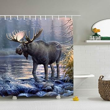 Amazon Com Wanl Cute Moose Shower Curtain Bathroom Decor