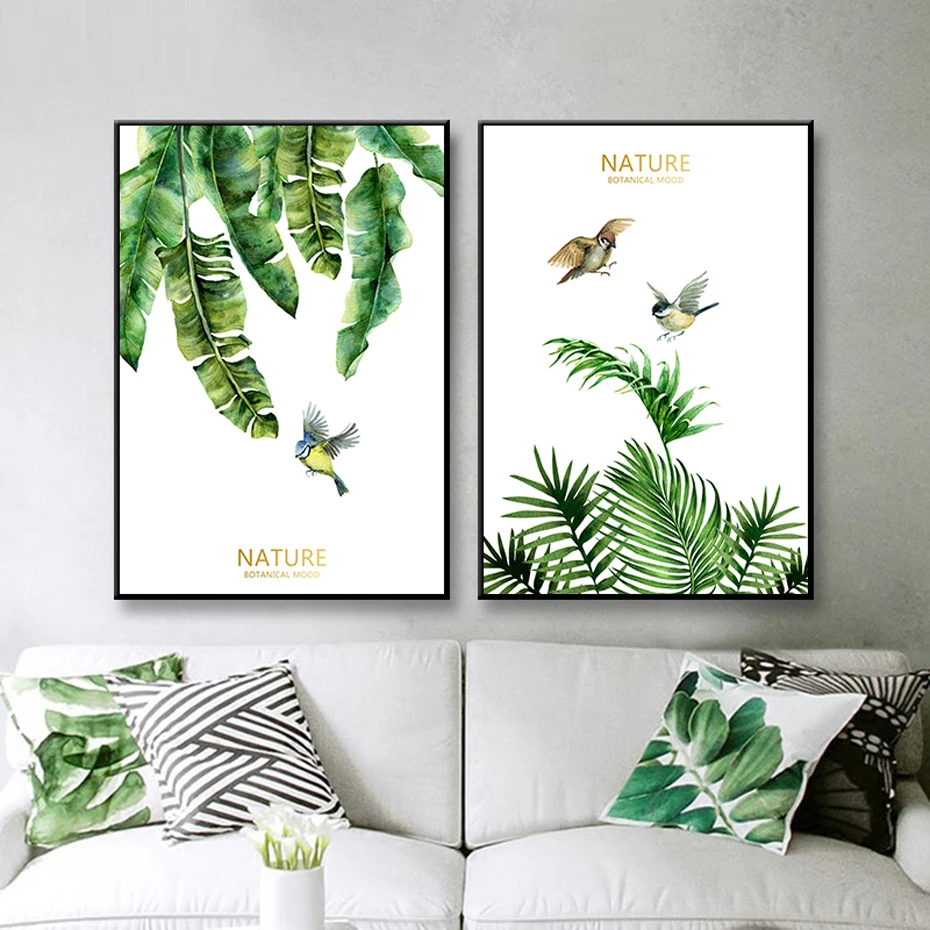 Nordic Refresh Birds And Leaves Nature Wall Art Canvas Paintings