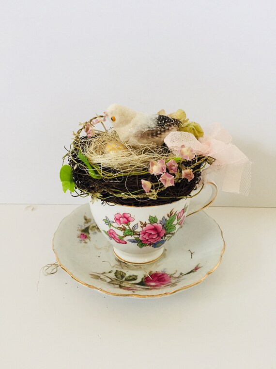 Pink Bird Nest Decor Bird Nest Eggs Shabby Cottage Chic Etsy