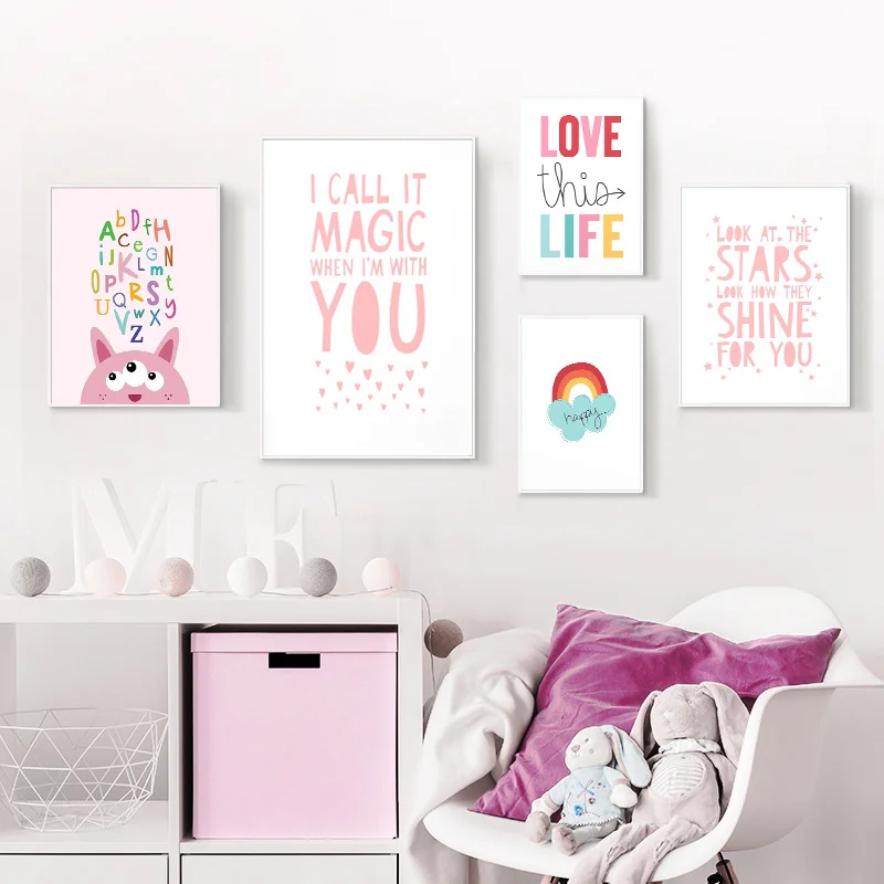 Pink Monster Alphabet Posters And Prints Canvas Painting Wall Art
