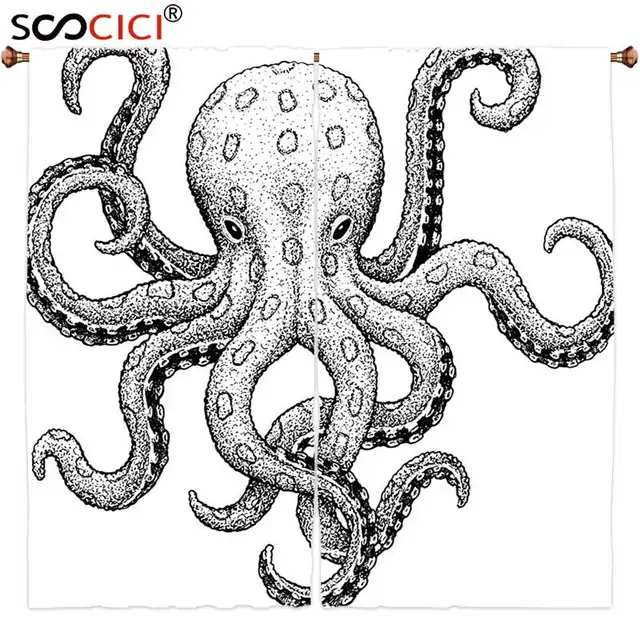Window Curtains Treatments 2 Panels Octopus Decor Octopus