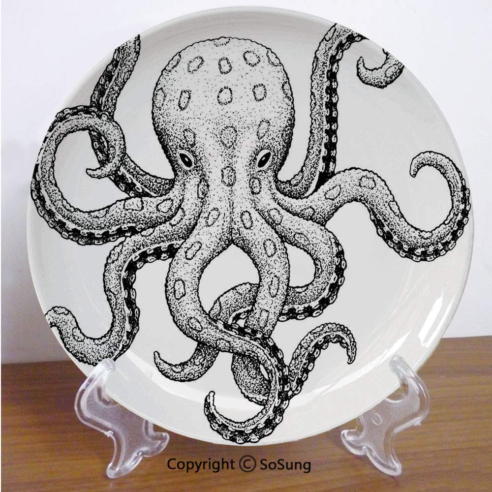 Amazon Com Octopus Decor 7 Ceramic Decorative Plate Sketch Style