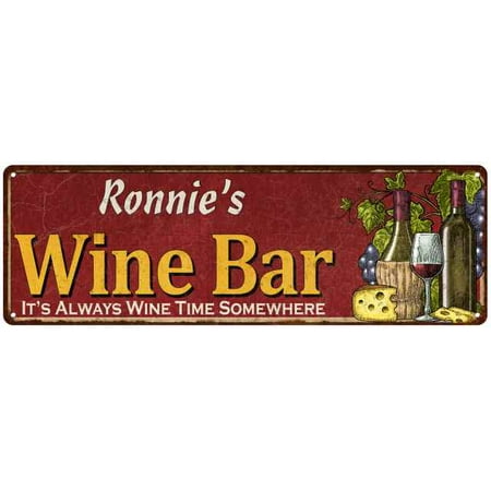 Ronnie S Wine Bar Red Personalized Home Kitchen Decor 6x18 Sign