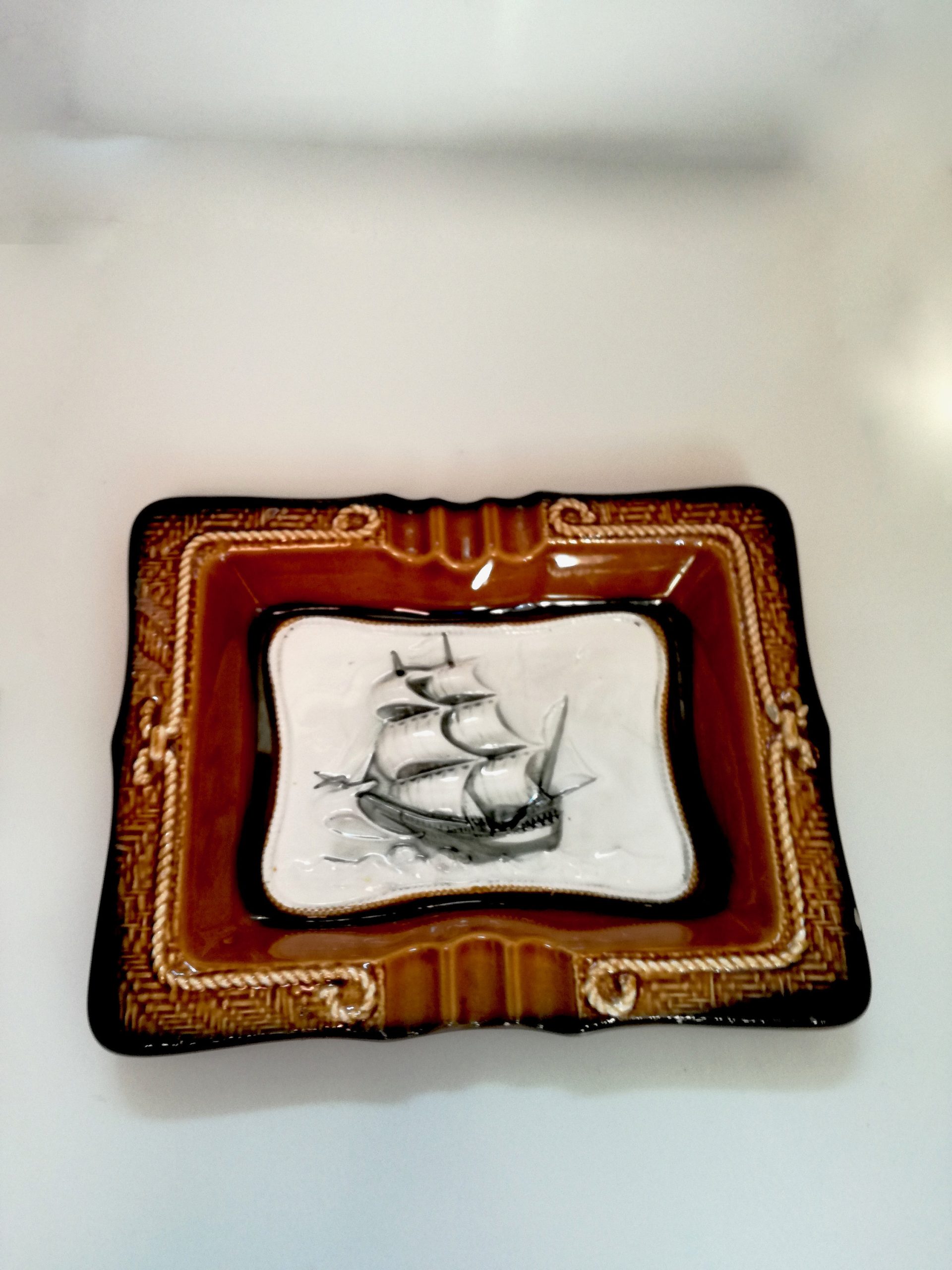 Vintage Sailboat Ashtray Ceramic Emerald Green Vintage Schooner