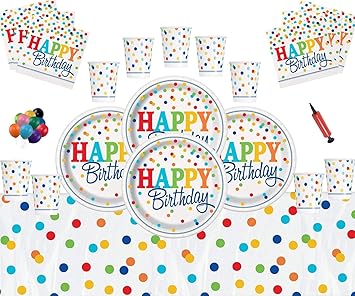 Rainbow Polka Dot Party Supplies Happy Birthday Tableware Set
