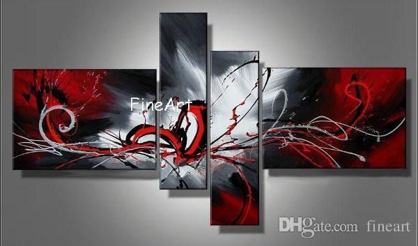 2019 4 Panel Wall Art Handmade Oil Paintings Gallery Red Black