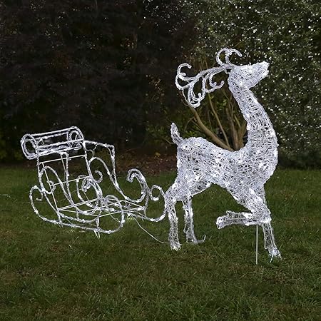 96 Led Ice White Outdoor Two Reindeer Sledge Decoration Mains