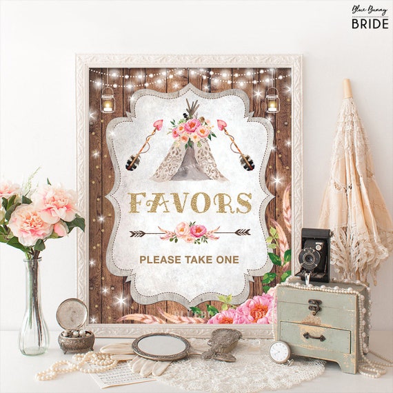 Rustic Bridal Shower Decoration Boho Teepee Favors Sign Etsy