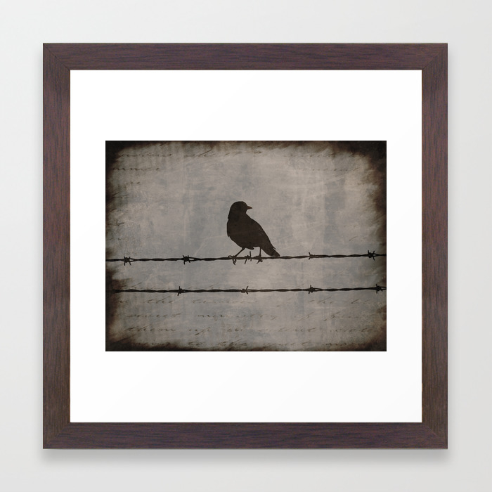 Rustic Black Bird Barbed Wire Modern Country Home Decor Art Matted